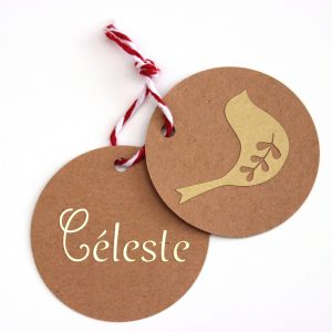 - Assortiment de 10 étiquettes rondes blanches et/ou krafts et/ou noires avec un oiseau doré